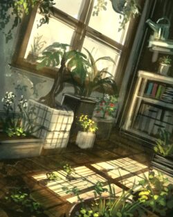 ruins indoor nature girl chair greenhouse digitalart abandoned building overgrown sunlight moss cozy nostalgia