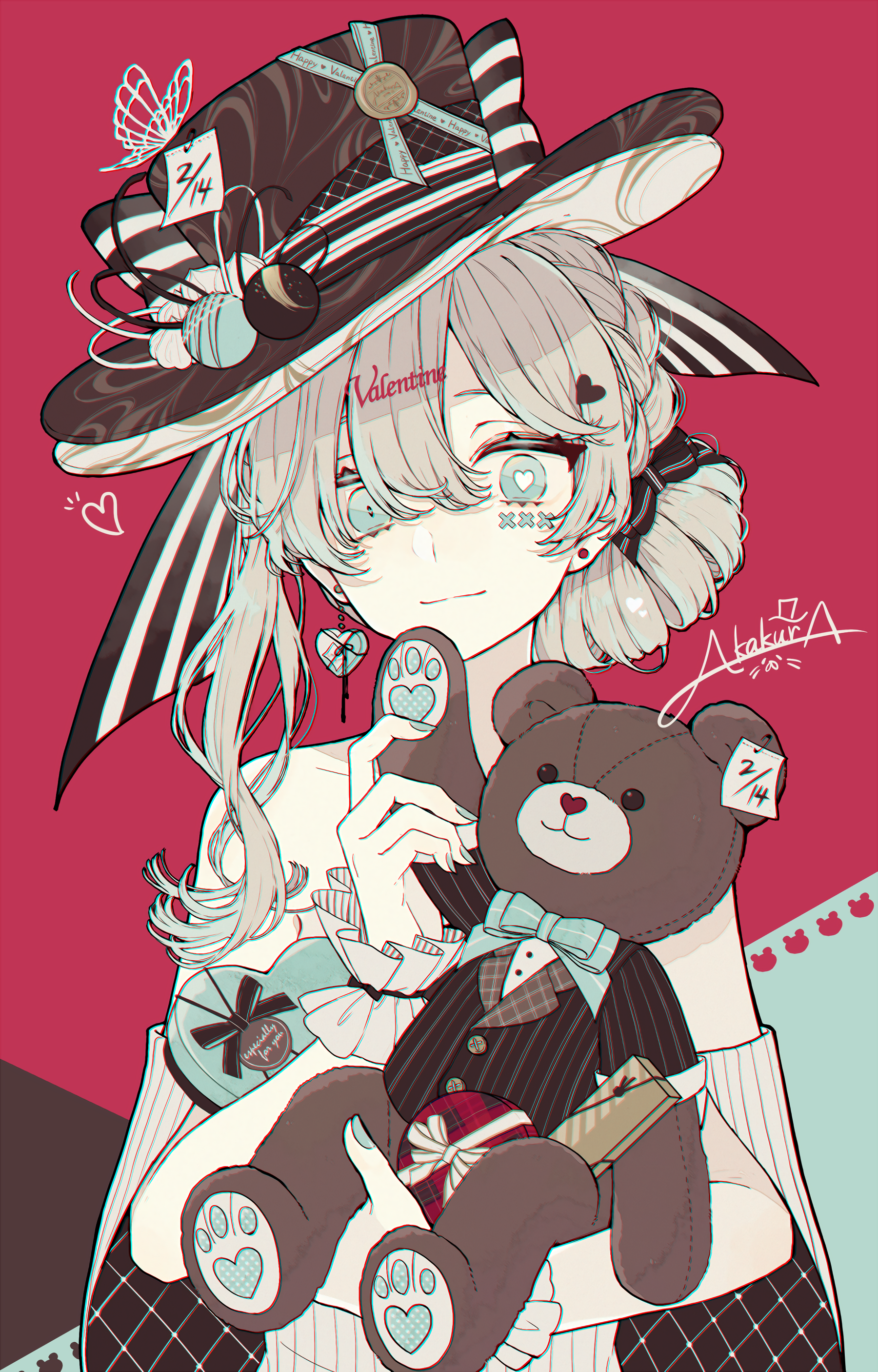 A digital horror illustration of a girl in a school uniform standing in a shop doorway, with a giant eyeball displayed in the bloody window.