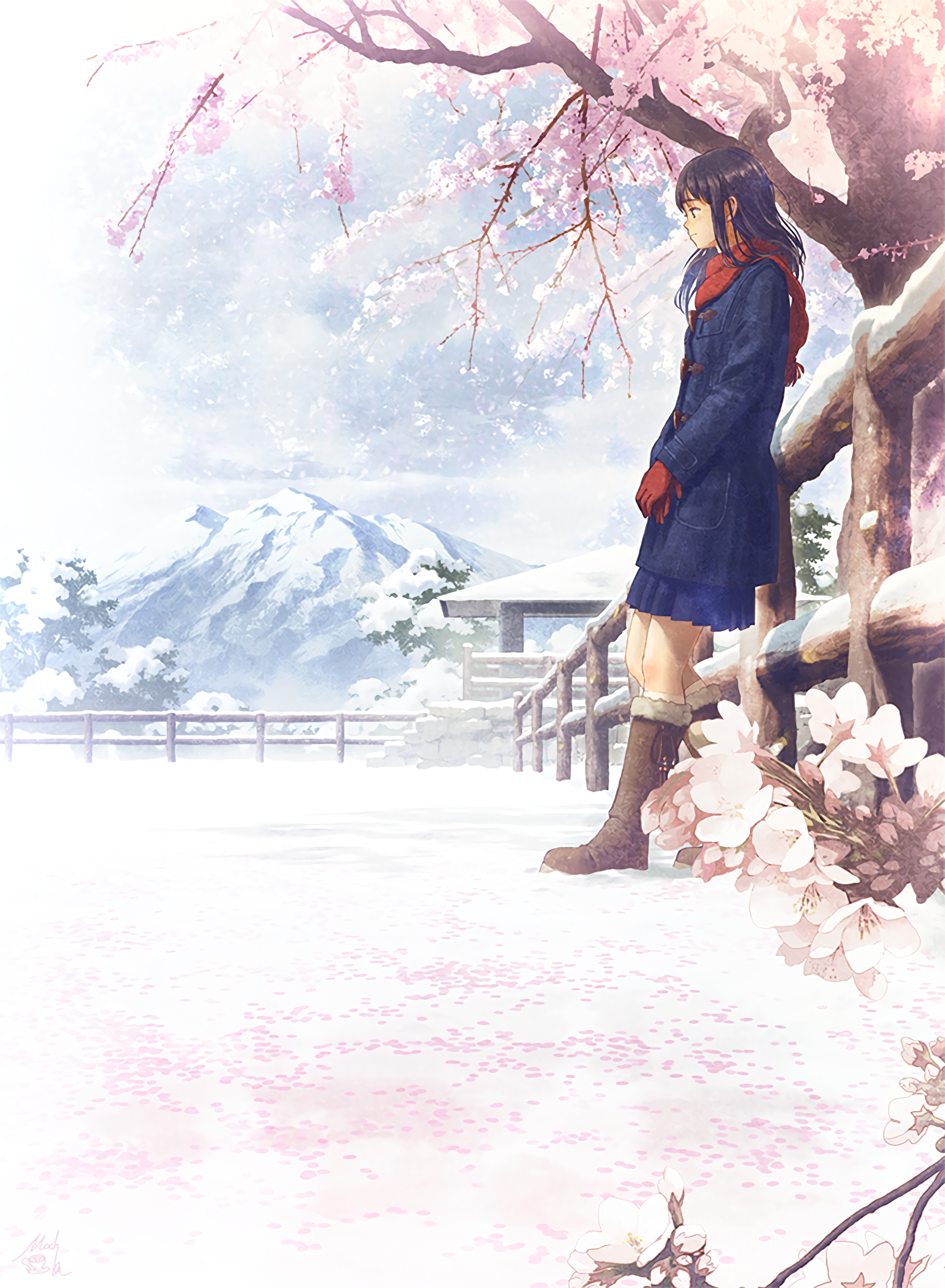 cherry blossom giant tree pink flowers fantasy landscape glowing tree magical nature ethereal light umbrella girl scenic sakura floral wallpaper